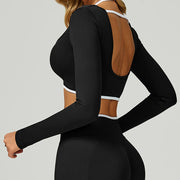 Soft Backless Sculpted Athleisure Crop Top With Sleeves