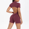 Light Weight zippered short-sleeve jumpsuit in a nylon-spandex blend moves with you, offering a sculpting, second-skin feel that stays light through every stride. Designed for performance, the fabric breathes, dries quickly, resists wrinkles, and stretches with your body for seamless transitions from warm-up to cool down. The clean, streamlined silhouette flatters with a true-to-size fit, while a minimalist zip detail adds a subtle, modern edge. Perfect for running, cycling, yoga, hiking, or studio workouts, this versatile piece drapes with ease and keeps you comfortable all day long.