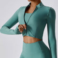Designed as a luxuriously contoured yoga jacket, this piece moves with you through studio sessions and outdoor runs with a second-skin feel. The nylon-spandex knit hugs the silhouette, offering gentle compression, breath-ability, and quick-dry performance that keeps you dry and confident as you flow from warm-ups to cool-down stretches. A sleek nylon zip front adds a clean, minimalist line, while anti-pilling, anti-shrink, and wrinkle-resistant properties ensure it stays smooth and flattering wear after wear. With a true-to-size fit and full-length sleeves, it layers effortlessly over your favorite top and moves with every bend and stride. The result is a versatile jacket that elevates your practice and everyday activity with understated luxury.